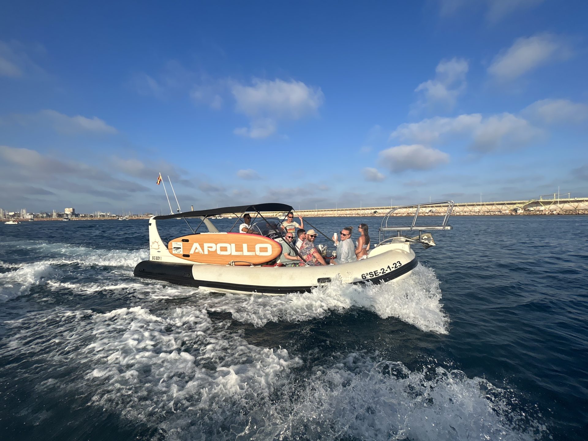 Con una capacidad de 10 personas, el Toutan puede llevarte a sitios espectaculares con su potencia de 280CV, una longitud de 8 metros y sus extras, entre los que se incluyen un sistema de sonido, luz de ambiente, nevera, GPS, Bluetooth, sonda, cubitera, 2 mesas, ducha, solarium y un trampolín. Equipado con cómodos asientos de cuero y más cosas.